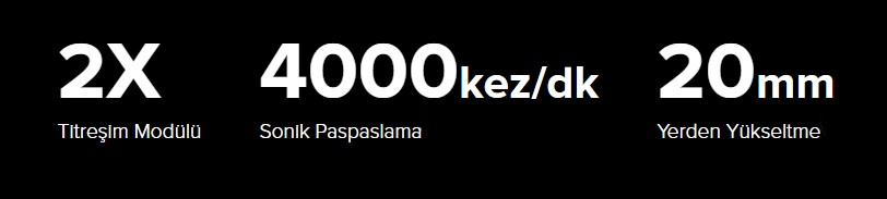 Çift titreşim modülüne sahip geliştirilmiş paspas, dakikada 4000 kez yüksek hızlı fırçalama ile toz, kir ve kurumuş lekeleri kolayca halleder. Halıları temizlerken yerden 20 mm'ye kadar yükselerek, istenmeyen nemliliğe sebep olmadan eş zamanlı olarak süpürme ve paspaslamaya izin verir.